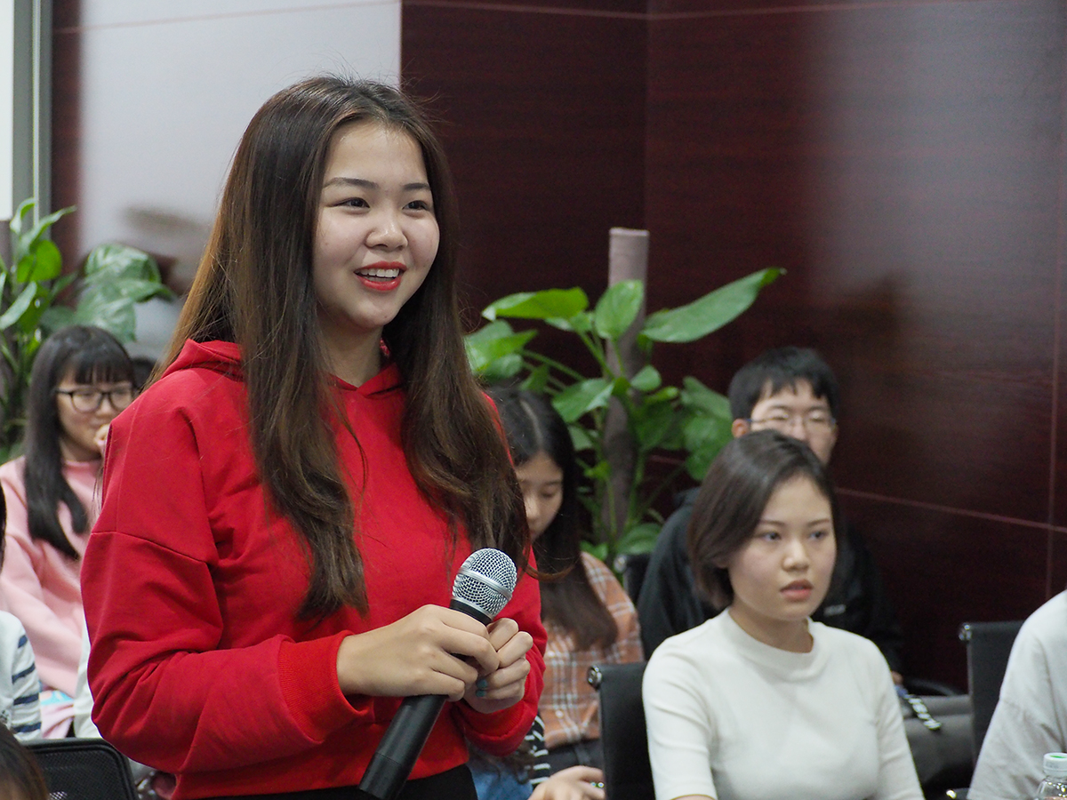 盈科律所安排与同学们交流的律师和广外法学院渊源颇深。翟律师以广外法学院大师姐的身份,向同学们传授了她有关职业准备的宝贵经验。她认为,在大学四年里,同学们要好好装备自己,重视学科学习,并努力学好优势科目——英语;她还鼓励我们尽可能地享受校园多彩的生活,做到全面发展;另外,她还建议同学们提前积累一定的职业素养、学习相关的礼仪、掌握基本技能。而风趣幽默的邓律师则从律师职业的自由度、成就感和自我满足感、努力程度与自身事业高度等方面与同学们分享经验;他还鼓励同学们要着重锻炼自己的口头和书面表达能力。在两位资深律师分享完以后,在盈科律所工作的另外两位同为广外毕业的青年律师也结合自身经验,在职业选择等方面给出了一些建议。其中一位师姐还向同学推荐了无讼、启信宝两个有利于同学们日后开展工作、学习的网站。