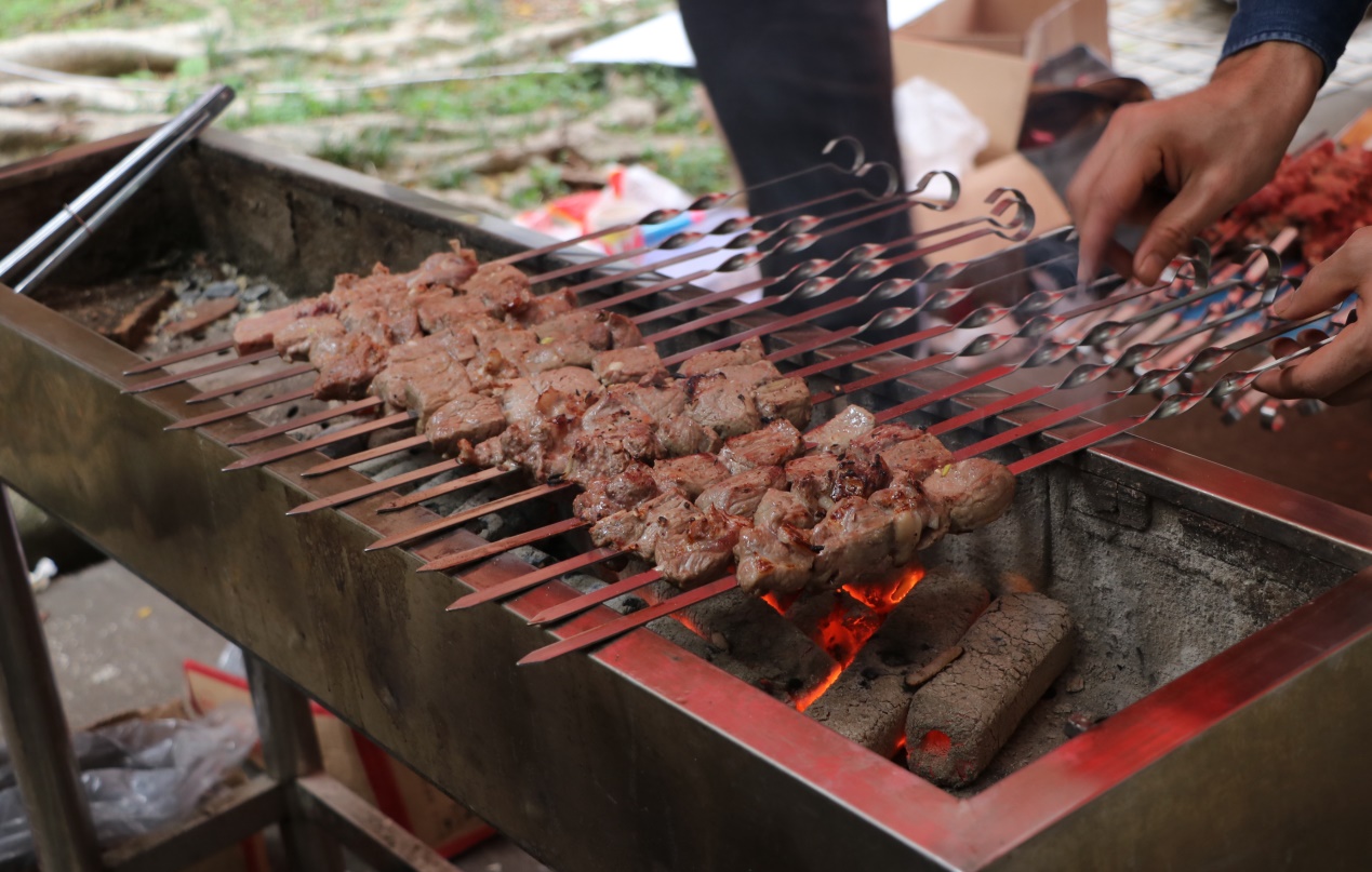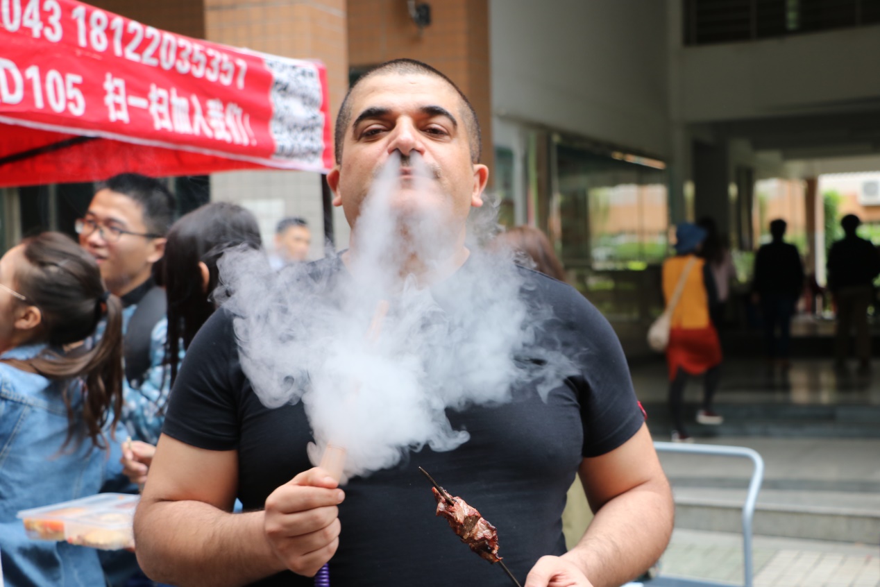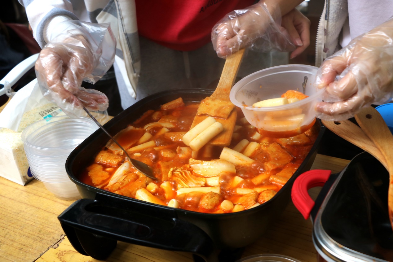 12个摊位打造的美食长廊时刻挑动着学生的味蕾。日语系分两个摊位进行活动,其摆出的各类美食中,羊羹和清透诱人的樱花清酒以及水信玄饼受到许多人的追捧。阿拉伯语系摊位摆出了“烟熏火燎”、肉香扑鼻,“烤爸爸”和“想我了吗”等招牌清真食品,销售现场一度火爆。马来语系摊位推出了在外教亲自指导下制作的椰浆饭和咖喱饺等美食;咖喱香味萦绕的印地语系摊位上,色香味俱全的咖喱鸡肉饭和牛奶粥广受好评。此外,老挝啤酒、老挝奶茶、韩国炒年糕、鱼糕、越南春卷、泰国芒果糯米饭、冬阴功汤等美食不胜枚举。