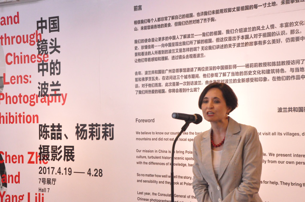 本网讯4月19日上午10点,由波兰驻广州领事馆和广东美术馆主办的“中国镜头中的波兰——陈喆、杨莉莉摄影展”在广东美术馆7号展厅正式开幕。出席本次开幕式的主要有波兰驻广州领事馆总领事约安娜·斯科柴克(JoannaSkoczek)女士、广东美术馆馆长王绍强、资深摄影师陈喆教授和杨莉莉教授。广外波兰语系系主任茅银辉副教授、外教阿格涅什卡、青年教师张和轩以及广外波兰语系学生也应波兰驻广州领事馆的邀请出席开幕式。