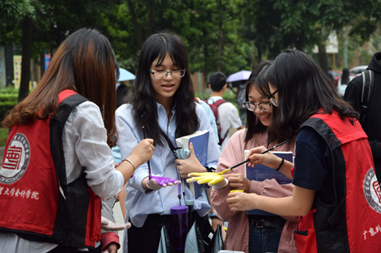 每天准时响起的广播、不时偶遇的懒洋洋的小猫、傍晚放学时恰到好处的晚风、和同学好友在广外经历的一切……在贴满各班级合照的KT版上,同学们用各色染料留下掌印,留下对母校虽广外时过境迁却也难以磨灭的记忆。