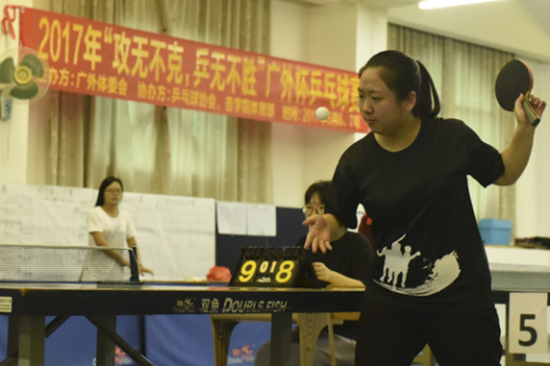 7日下午两点,广外杯乒乓球赛团体赛决赛开始。丁陈君雯、陈翠婷、吴钒同学代表我院参与女子团体决赛。