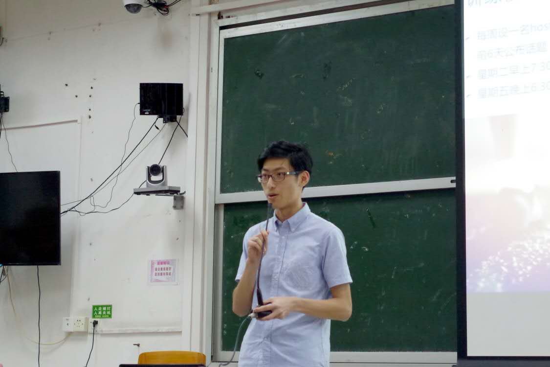演讲队队长周鹤楠对演讲实训基地进行了总结。他首先介绍了演讲队包括主题演讲、自由讨论、常规训练、即兴演讲在内的训练模式,以及内部共享有声读物、图书的活动。而在演讲实践中,队内成员在全国英语演讲比赛、“高翻杯”英语演讲大赛等重大赛事上都取得了优异的成绩。最后,他表示下一年演讲队将完善制度变革,希望成员们能通过演讲培养自信,拓宽视野。