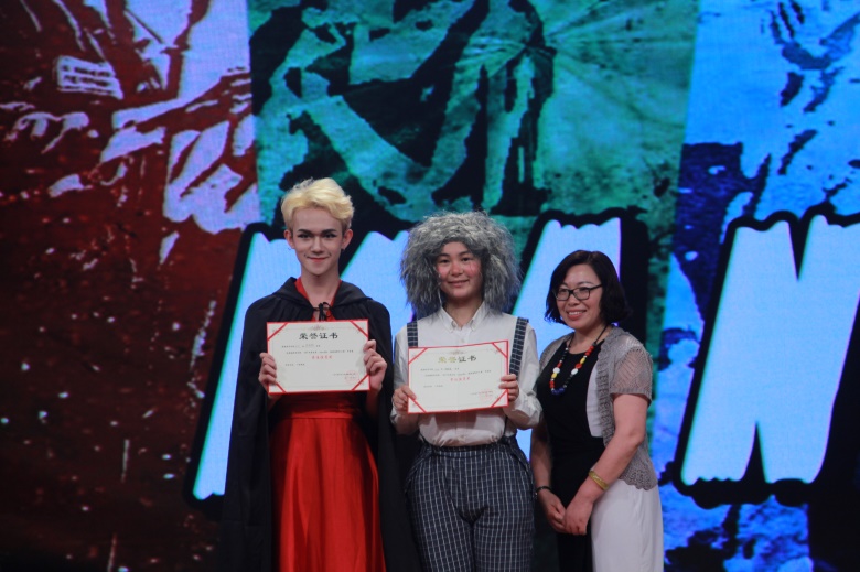 轻松有趣的游戏环节过后,比赛结果出炉,学院领导及老师为获奖选手颁奖,1504班获得本次英语喜剧大赛一等奖,最佳演员奖由1602班的宋浩彬和1504班的周晓盈获得。