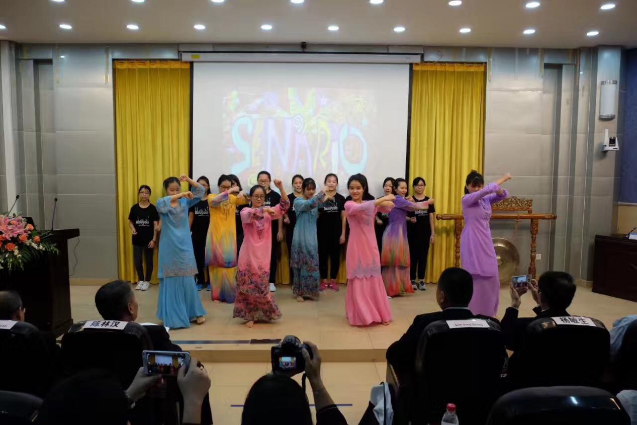 开幕式伊始,来自广外马来语系和马来西亚玻璃市州伊斯兰学院的学生先后为嘉宾带来文艺表演。