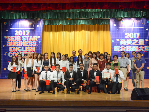本网讯5月26晚19点,由国际商务英语学院(以下简称商英学院)举办的2017“商英之星”英语综合技能大赛在六教报告厅缓缓拉开序幕,参与此次比赛的队伍分别是:“Enchanted”队、“Protégé”队、“Poseidon”队、“Red Red U Bling Bling”队、“Crux”队、“Zero”队、“Ambience”队和“New Elements”队。戴桂玉教授、副院长彭玲玲、青松老师、国际商务英语系主任杨丽、陆露副教授和李冬云老师应邀担任本次比赛的评委。党委书记王秀民、副书记张林茂和院长郭桂航作为嘉宾出席比赛。