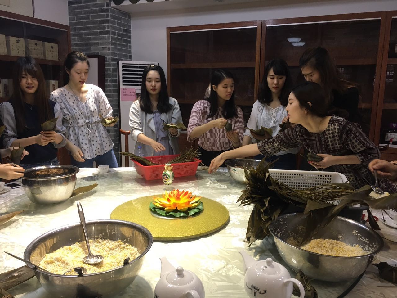 留学生动手包粽子
