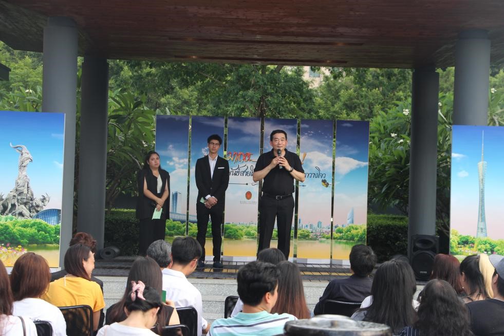 本网讯为了促进在华泰国留学生与中国学生的交流与沟通,2017年6月7日下午,泰王国驻广州总领事馆举办了“泰中学生联谊活动”。应驻穗总领事瓦信.蓝巴替盛阁下的邀请,泰语系20名大三学生在系主任廖宇夫老师的带领下,前往泰领馆参加活动。
