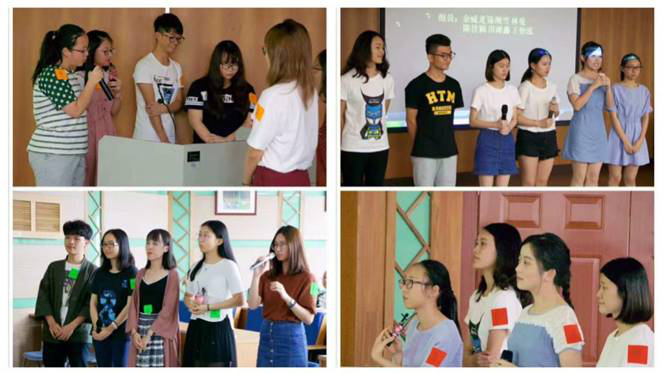 每一位同学都展示出了自己最好的一面,从他们的眼神、动作以及配音时的模仿的语气,我们可以感受到他们背后付出的辛勤汗水。特别是第九组同学的压轴出场,他们所配音的剧目是«小战象»,在大家已经略感疲惫的时候以动画片的新颖形式吸引了每个人的注意。组员之间配合默契,对动画片的配音惟妙惟肖,每隔几句就能让观众发现惊喜之处,可以说是把可爱的动物角色演绎得出神入化,且印上了自己的烙印,博得了现场雷鸣般的掌声。