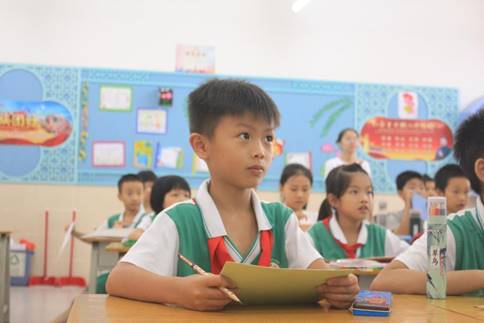 清点好学生人数后,义教组两位班主任按照年级对学生进行分班。8点50分,在两位班主任的带领下,学生在升旗台前列队等待开学典礼的召开。
