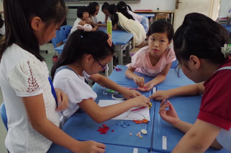“装饰生活”课上小朋友们分组进行创作