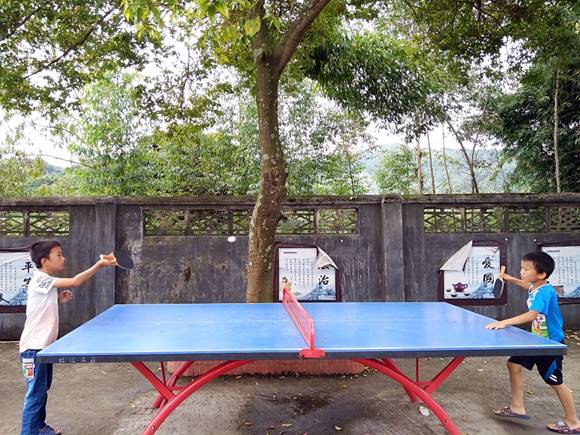 到后来,虽然小雨淅淅沥沥地下着,但这丝毫没有影响到同学们运动的热情,同学们在有遮棚的乒乓球台处一起打乒乓球,而住在临近的小朋友也一起加入了我们,与我们共享运动的美好时光。同学们在乒乓球台前斗智斗勇,各显神通,一个漂亮的旋球,一个精彩的反扣,一个巧妙的弧圈球……校园中雨滴的声音伴随着欢声笑语,也消散了大雨带来的不快与阴霾。