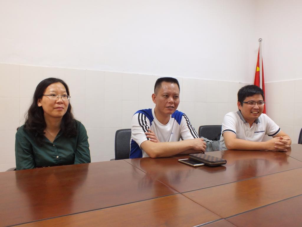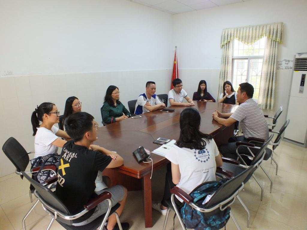 大塘中学王福权校长与两个队的队长接待了法学院的领导们,并举行了相关会议。在会议上,王校长与林茂辉进行了谈话,讨论了关于如何为大塘中学注入新鲜的师资力量,更好地建设大塘中学以及促进两校更好合作的问题。