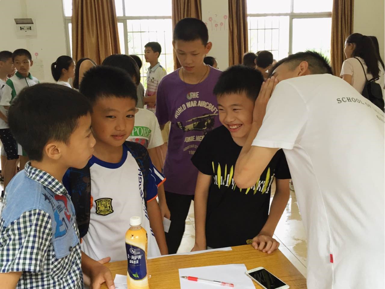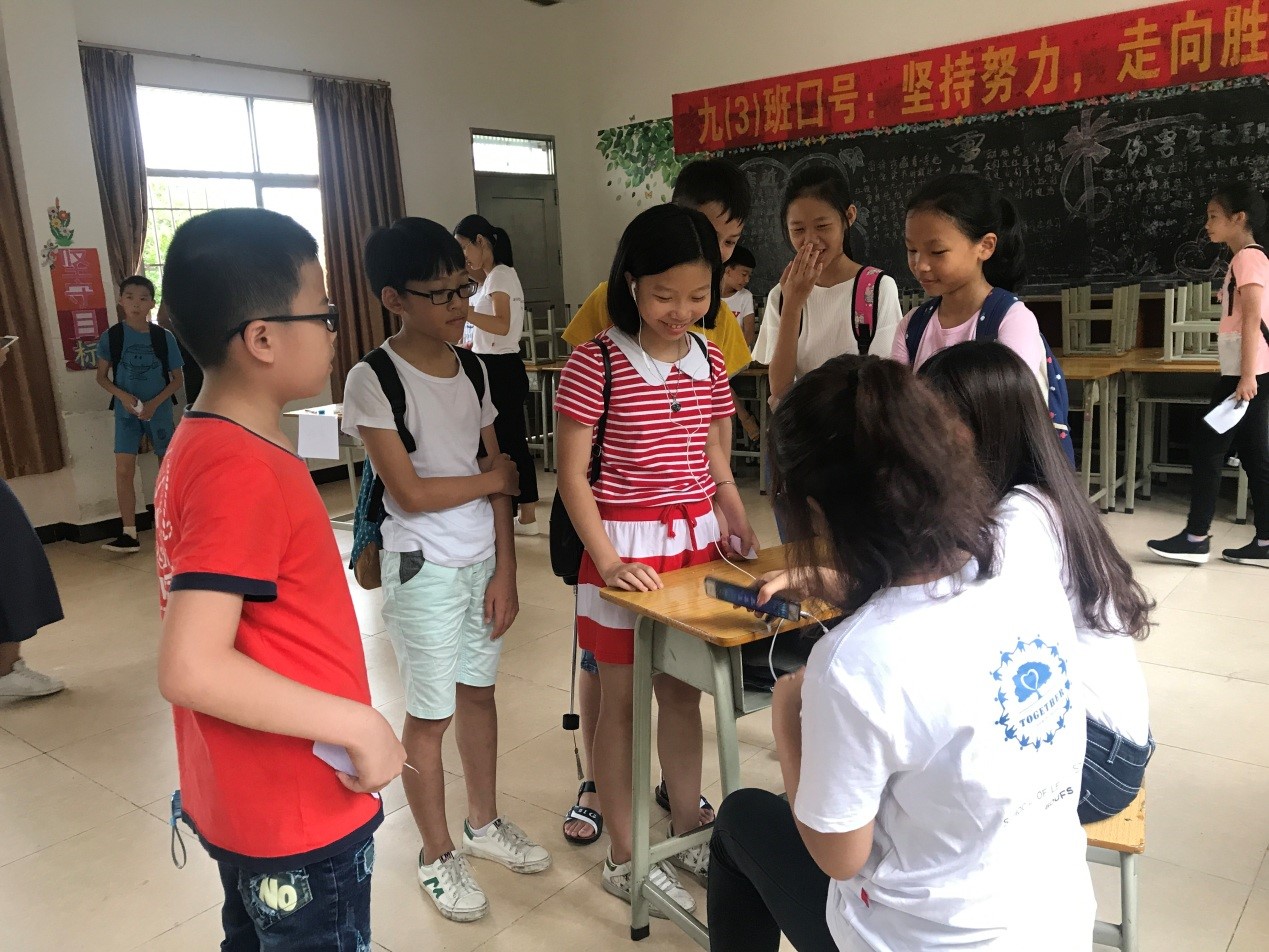 而问及举办游园会这个活动的初衷时,Together院队的文娱组组长张浩恒表示,举办游园会这个活动其实是继承他们法学院三下乡上一年在大塘中学的一个活动,但这个活动最重要的目的就是,希望学生们可以通过参与这个活动,从而增进他们之前的同学情,让他们有更好的凝聚力,让他们相互熟悉。与此同时,也希望通过这个游园会可以促进他们三下乡队员们与学生之间的交流和情感和各方面的发展。