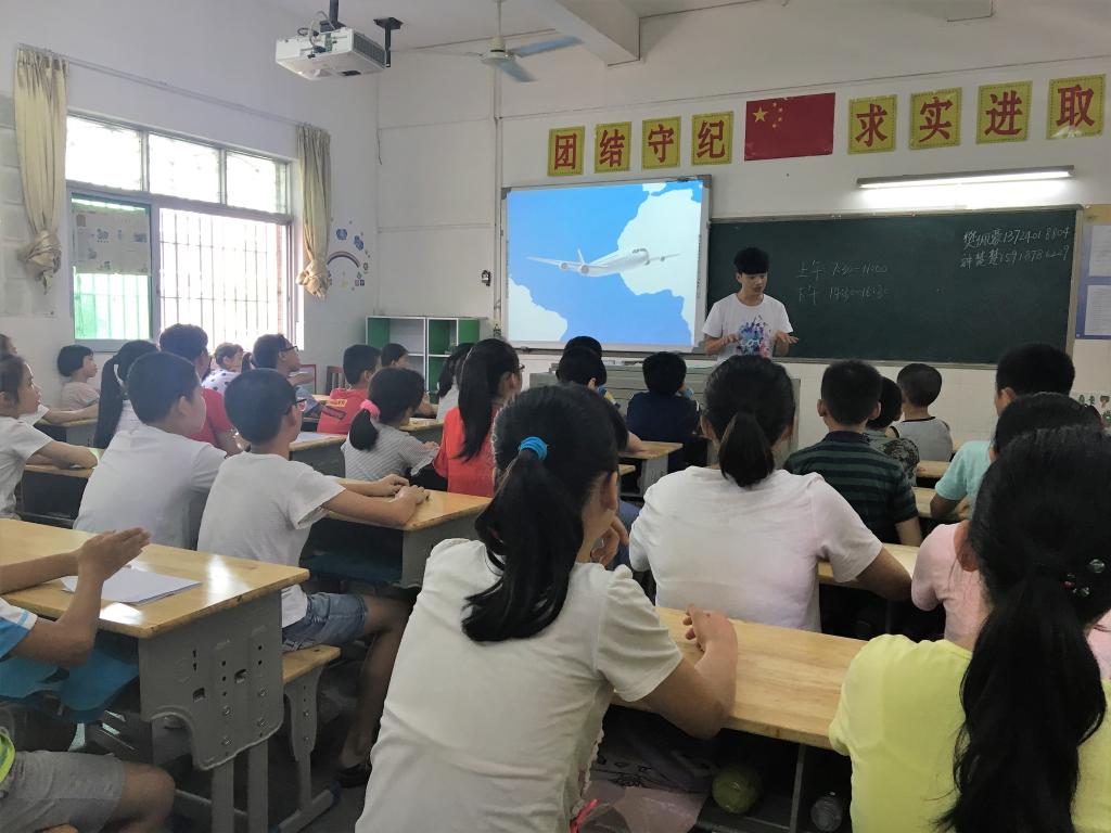 下午14:30,三下乡支教第一课正式开始,1班由樊佩豪老师主讲奇妙世界地理,向学生们介绍世界各地著名的地理奇观,丰富学生的课余文化知识及深入了解大自然的魅力。2班由潘锐芳老师主讲“我们穿越吧”系列历史课,潘老师寓教于乐,以有趣的讲故事的形式带领学生们走进历史的海洋。