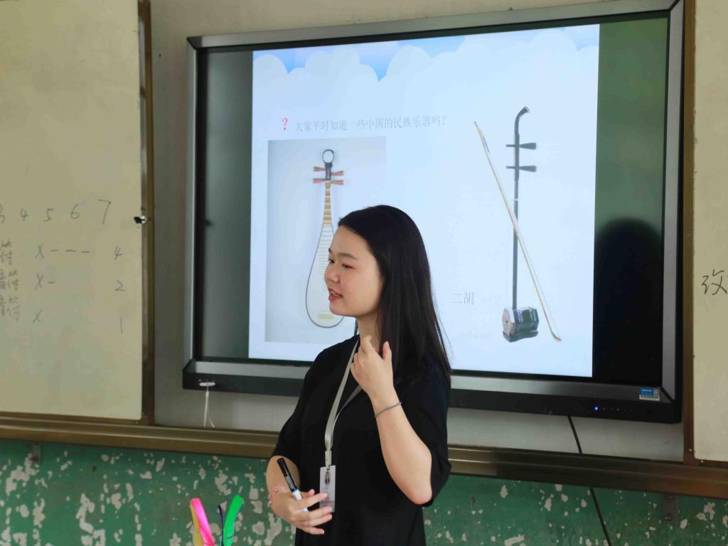 和往常一样,老师有条不紊地组织着孩子们早读,朗朗读书声伴着旭日东升,工作的动力也由此勃发。宫、商、角、徵、羽代表着最基本与古老的律吕,正是这些最基本的律吕,组合成下里巴人抑或阳春白雪。音乐课上义教组组员陈若琪为孩子一遍遍讲述着基本的乐理知识,而后通过播放不同乐器演奏的乐曲,教他们分辨着各种乐器音色的差异,也将热爱音乐与欣赏艺术的种子播撒在他们的心底。