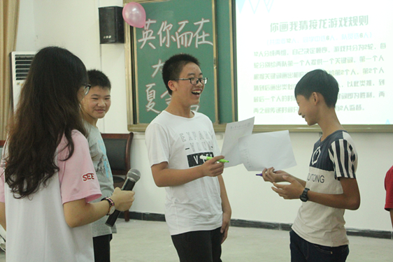 接下来是互动环节,我们为大家准备了你画我猜的小游戏。同学们的热情与参与度也非常高,可谓是“八仙过海,各显神通”。当然游戏过程中也不乏令人捧腹大笑的有趣画作。整个游戏点燃同学们对暑期夏令营的热情。