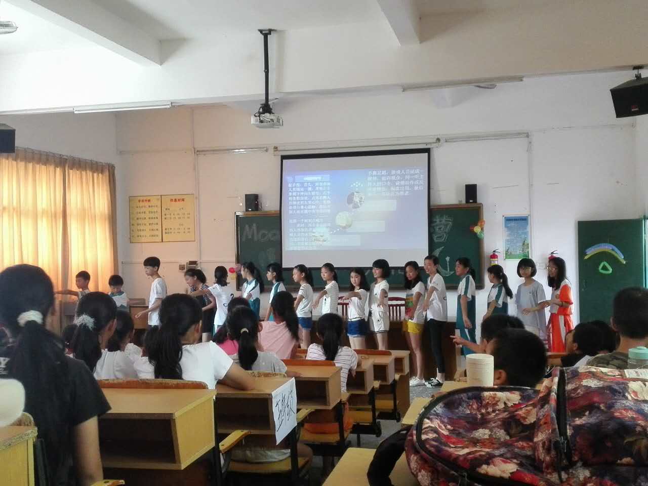接下来队长团的三位成员分别进行了自我介绍。队长许洁纯对学生们说,“希望每个队员都能像月光一样,照进你们心里,帮你们找寻自己内心的宝藏。”后勤组队员在自我介绍之后,献上了精彩的舞蹈表演,活泼的舞蹈和逗趣的音乐活跃了全场的气氛。雪花般纷落的纸片和最后的撒糖活动更是吸引了全场的目光。义教组的两位组长和副组长为学生们朗诵了一首《再别康桥》,学生们陶醉于优美的诗歌,场内也变得寂静无声。