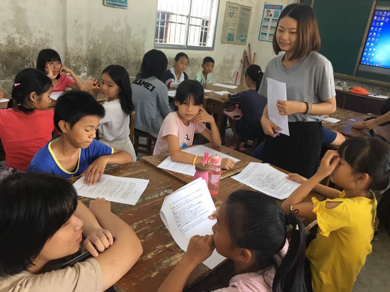 秉承三下乡活动的宗旨,聚焦课堂,开展了丰富多彩的义教课程。结合广外的外语教学特色和服务队成员的专业的背景,设计出具有新意且贴合河源市陂头镇的地方特点的课程。不仅有妙趣横生的“你说我猜”,还有引人入胜的“德语教音标”。创新课堂形式,打破单人学习模式,结合导师制和小组讨论制。让学生与老师之间的互动更频繁,学生与导师之间更紧密。这种新的模式在实施中也取得不错的效果。