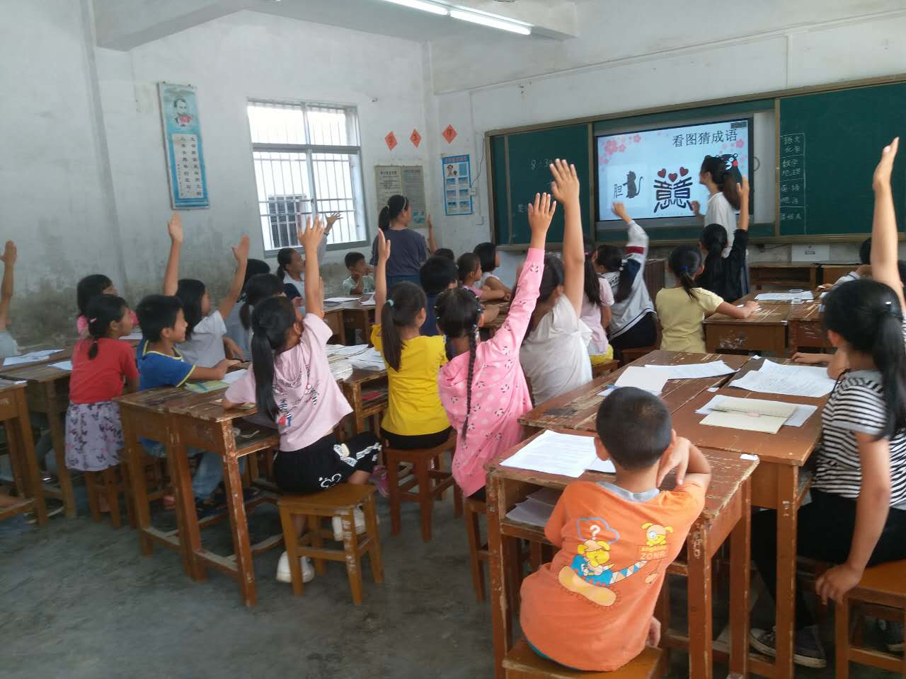 小朋友积极举手回答问题