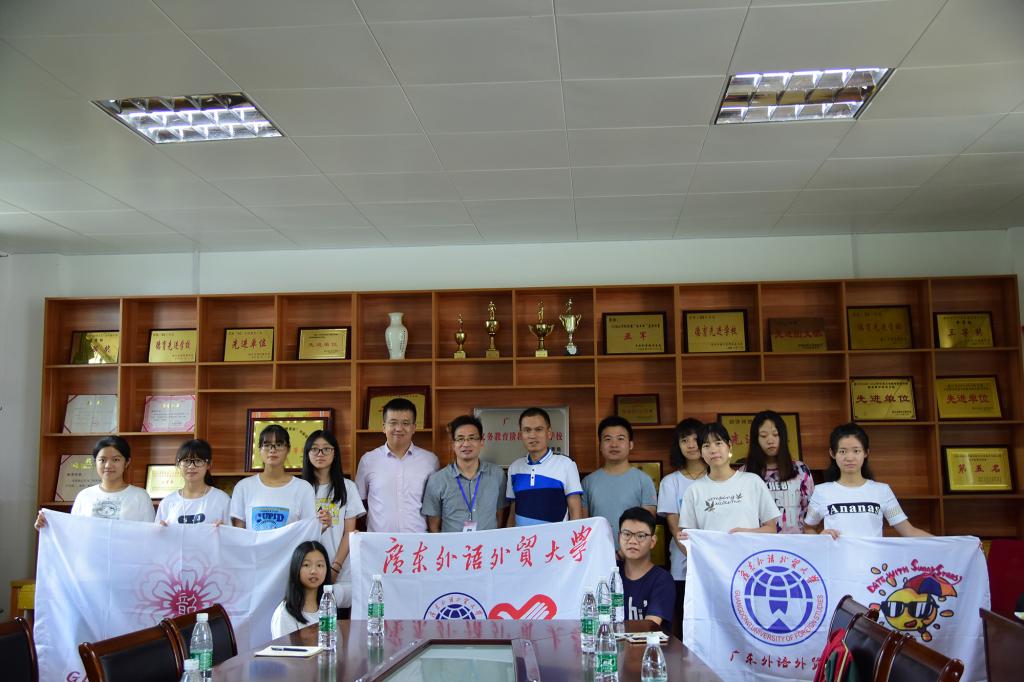 莅临枫湾中学三下乡服务基地的有广东外语外贸大学经济贸易学院党委副书记魏传文、经济贸易学院辅导员刘世鹏老师、谢铭威老师、枫湾中学相关领导。领导们给参加三下乡的队员带了王老吉饮料,使得队员们备受鼓舞。