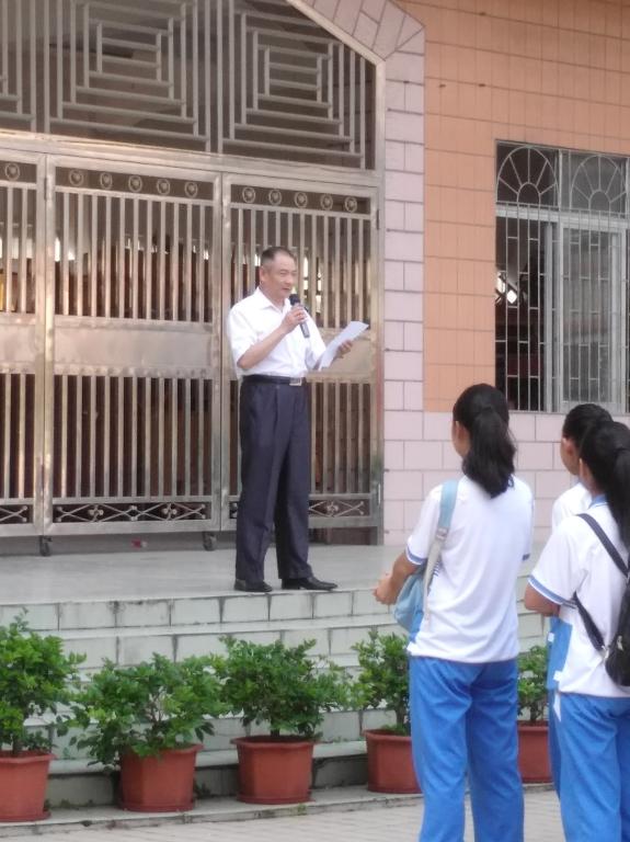 两个班级的同学们整齐有序地排列在厚爱楼前,随风飘扬的五星红旗指引着同学们为“中国梦”的实现而奋发向上。张育明副校长的讲话首先提到了要感谢广东外语外贸大学经济贸易学院的支持,感谢经贸学院同学们的配合,感谢教导主任的辛勤付出,以及感谢学生家长们的支持和信任。接着他提到了学习的内容,张育明副校长先对广外给予了非常高的评价,然后向同学们分析要学习我们的学习素质、知识气质和知识结构;学习我们的实践精神、服务精神和感恩精神;最重要的是学习我们的担当精神,因为这契合了学校坚持着的责任教育和担当教育。校长的讲话主要是教育同学们要懂得感恩,鼓励同学们向我们学习,同时也鞭策着我们把作为广外学子最为优秀的一面展现出来。