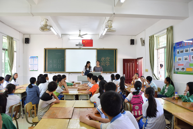 早会结束后,学生们陆续回到教室并根据队员们之前拟好的座位表分组落座。面对着熟悉的环境但相对陌生的同学以及完全未知的来自广外的哥哥姐姐们,学生们充满着新奇与期待。首先是队长李芷晴和副队长郑嘉雯作简单的自我介绍和队伍介绍,并传达此次三下乡能与小朋友们有一个圆满的共同成长的10天的目标与期望。接着就是各组队员一次进行自我介绍。义教组组员方燕珊的一句话道出了义教组的心声,“我们每个人都是第一次当小老师,有些紧张,有些忐忑,但我们都会努力做好!”。另一位组员刘紫荆更是以诙谐的语气说出了队伍的责任:“你们每个人都是我们的小太阳,我们将会一直围绕着你们公转!”