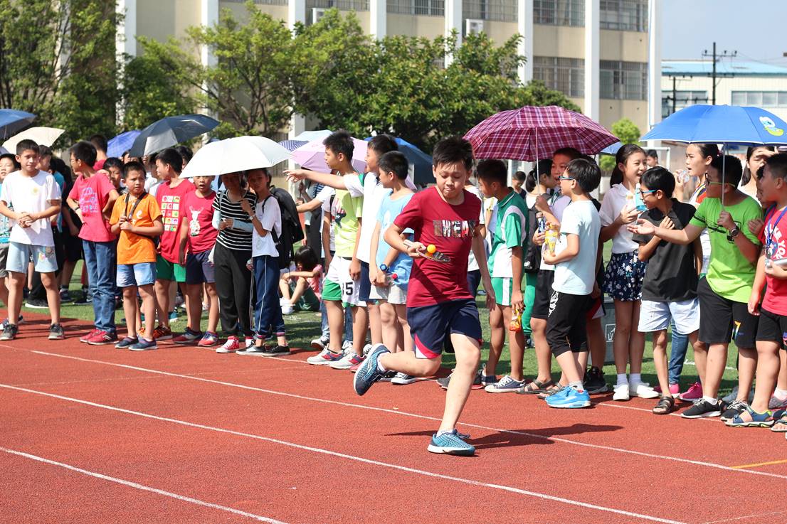 (一)端球跑:共进行4轮比赛,每轮两个班,每班派出10名队员。设定距离为25米,两边各站5人;第一名队员拿乒乓球拍端球跑向25米开外的第二名队员,以此类推进行接力,用时短的队伍获胜。
