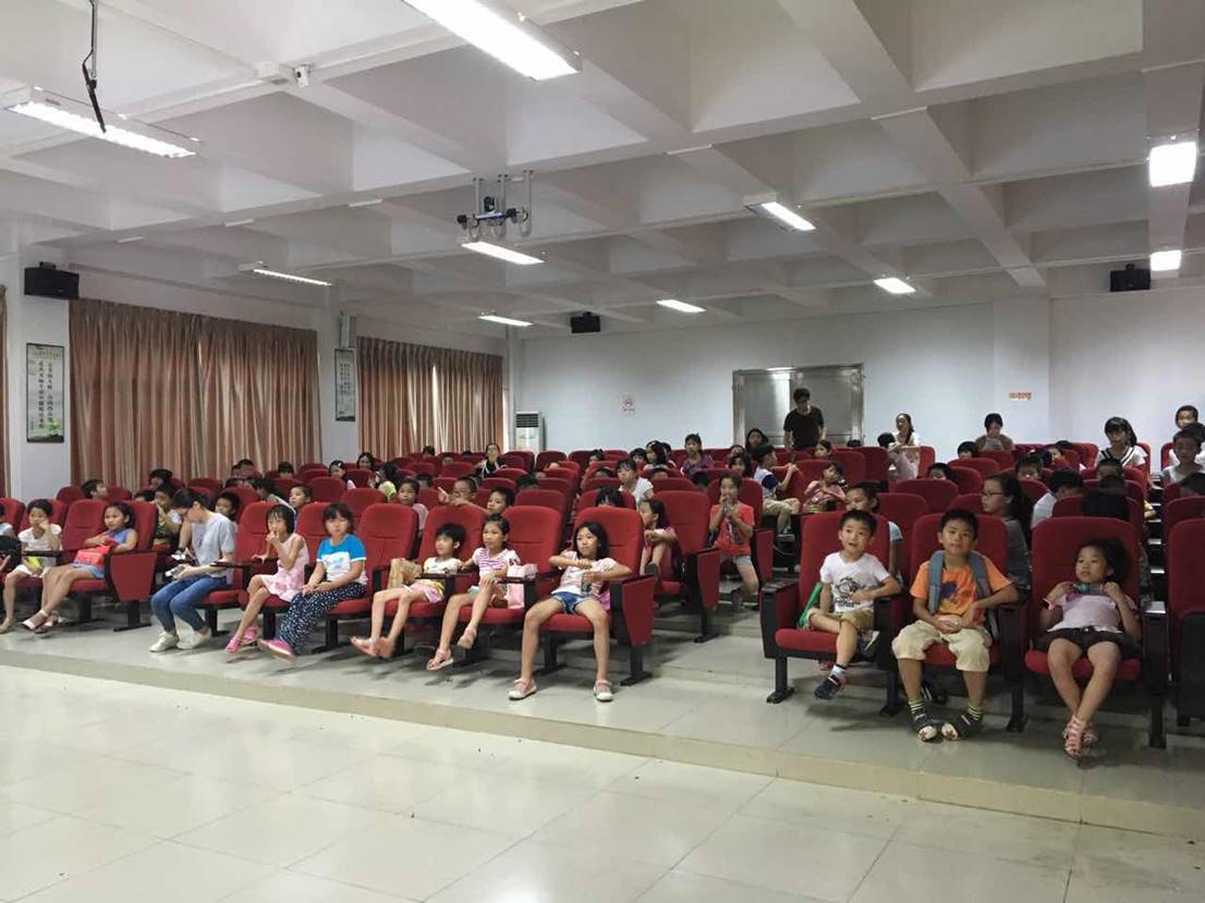 小朋友们在阶梯室听老师讲游戏规则