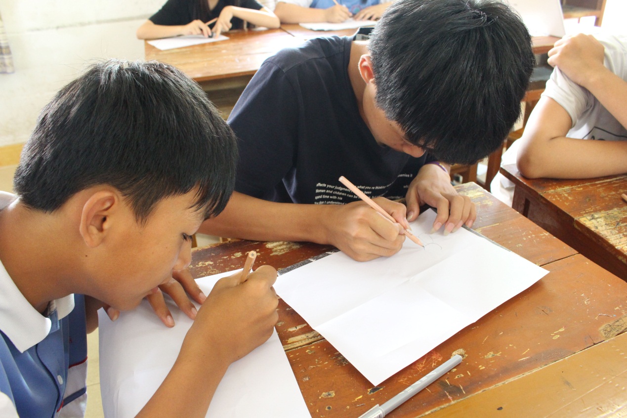 在调研组继续顶着烈日出行的今天,义教工作也在有条不紊的进行着。课堂上,学生踊跃参与,积极配合老师。特别是在简笔画课堂上,课堂气氛高涨,学生们画的图也是五花八门,各具特色。