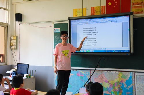“其实一开始参加三下乡是为了志愿时,而后来投入到这个活动的时候,就渐渐发现这个活动的吸引力——一群拥有共同志向的伙伴和一群活泼可爱的小朋友。踏进博爱小学的那一刻,仿佛自己回到了少年时代,这是一个很新鲜的体验。”这是叶俊锋在这个暑期选择三下乡的原因。