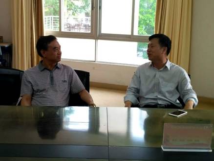 双方领导在会议室相谈的过程中,杨意义先简单地介绍了北江中学的历史和发展过程,他提到,近几年北江中学投入大量的资金发展多媒体设备以提高教学质量并增长学生的见识,并将在未来几年投入更多的资金进行基础设施建设。随即,杨意义详细地介绍了北江中学的教育理念和教学内容,他提到,北江中学通过设立一系列特色课程使得学生在德智体三个方面全面发展,充分地展示了北江中学全体教师在教学工作上的优秀成果。
