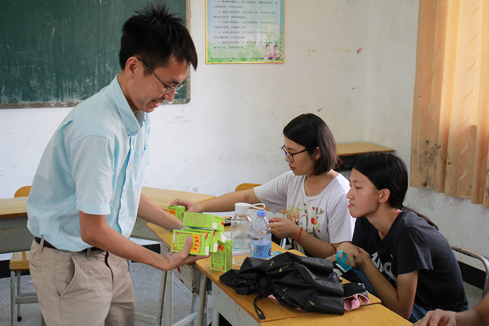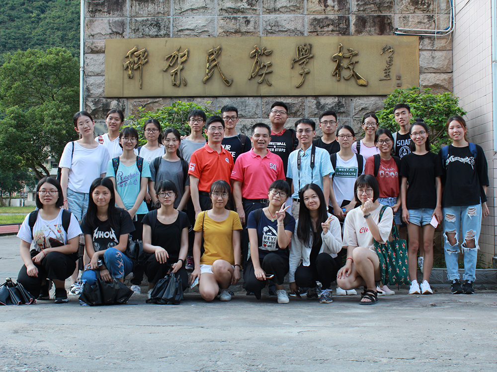本网讯2015年7月15日,广东外语外贸大学英语教育学院党委书记林绍雄、党委副书记徐昶斌、广州二中老师和校友何洁铵莅临清远市阳山县秤架民族学校,对参加今年“三下乡”社会实践的英语教育学院moonlight服务队进行慰问。
