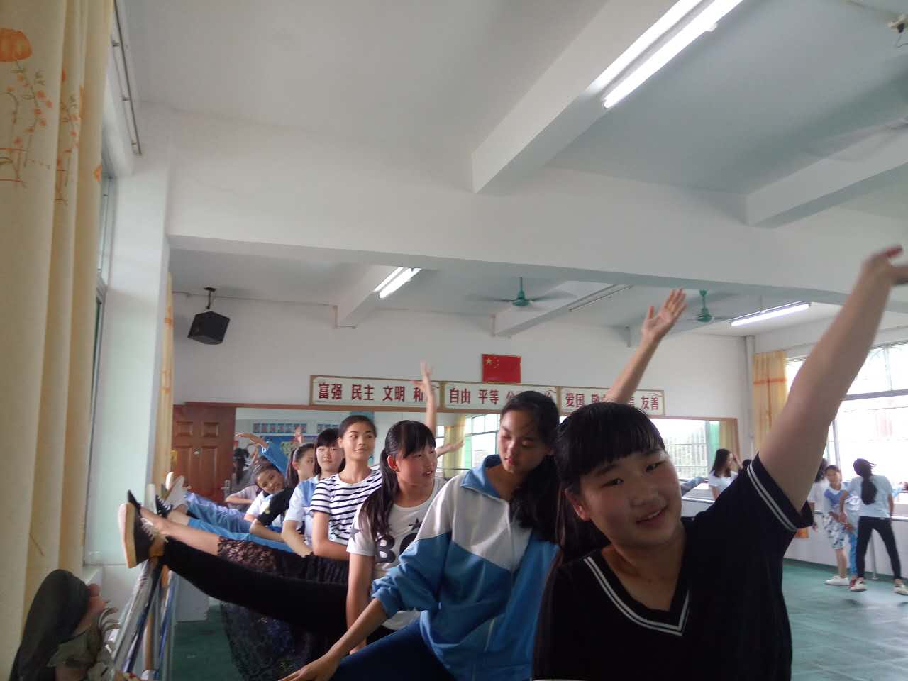 女生们正在做热身准备