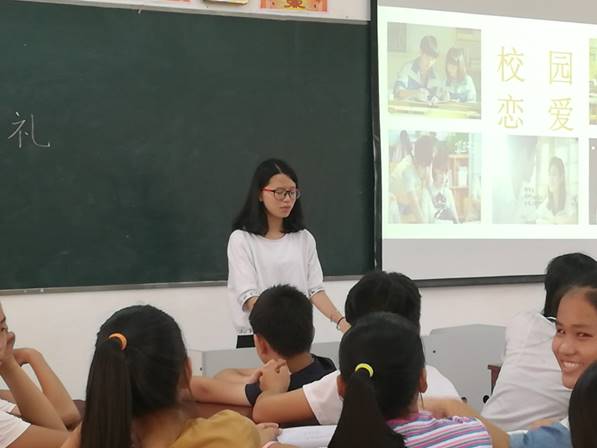 课堂上,任课老师秀琴姐姐首先通过一些影视作品,将学生们的关注点引向辩论主题:“中学生是否可以谈恋爱”。