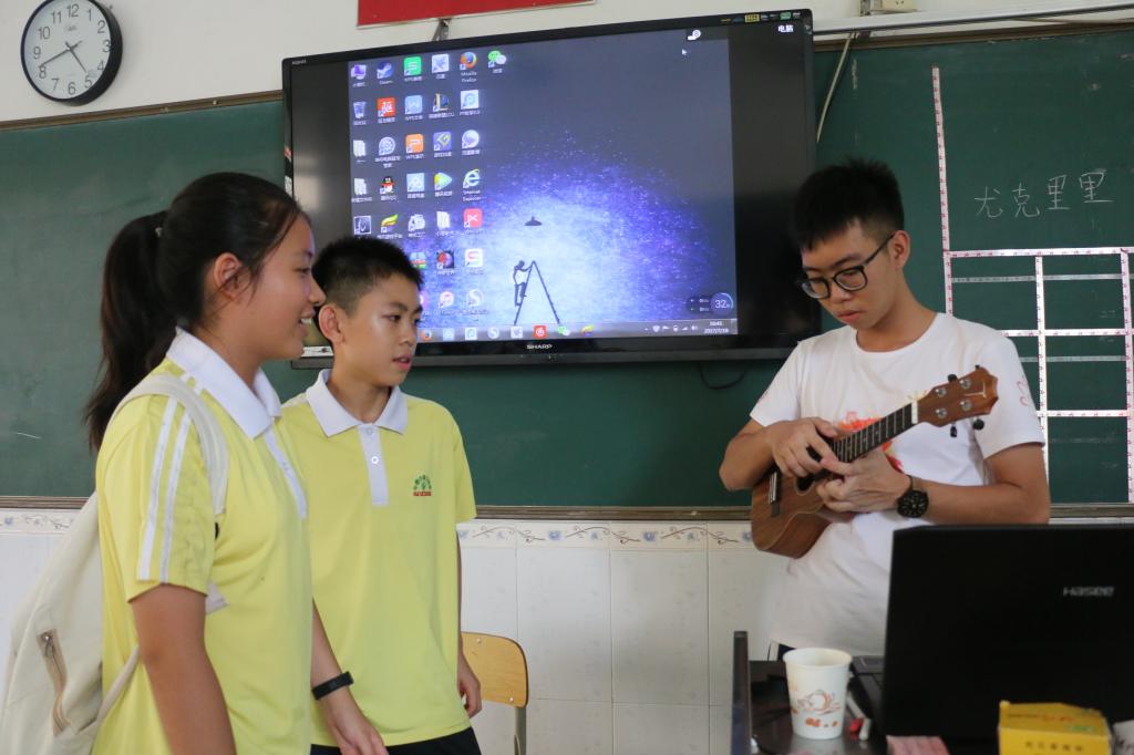 学生和老师讨论尤克里里