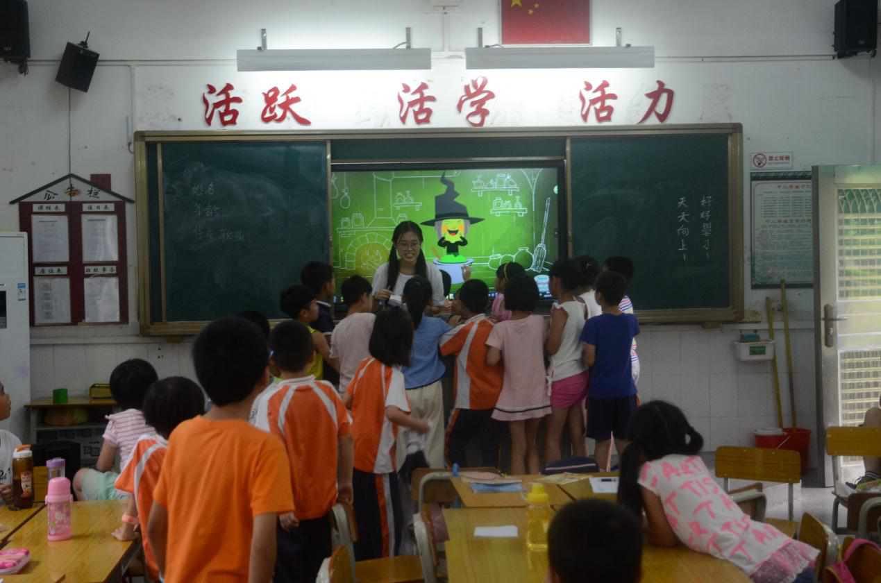 本网讯7月18日,今天是由马克思主义学院韩娟美老师带领的爱飞翔阳光天使服务队在穗石小学进行义教的第九天。义教组的成员依旧按时来到学校和孩子们一起继续学习生活。