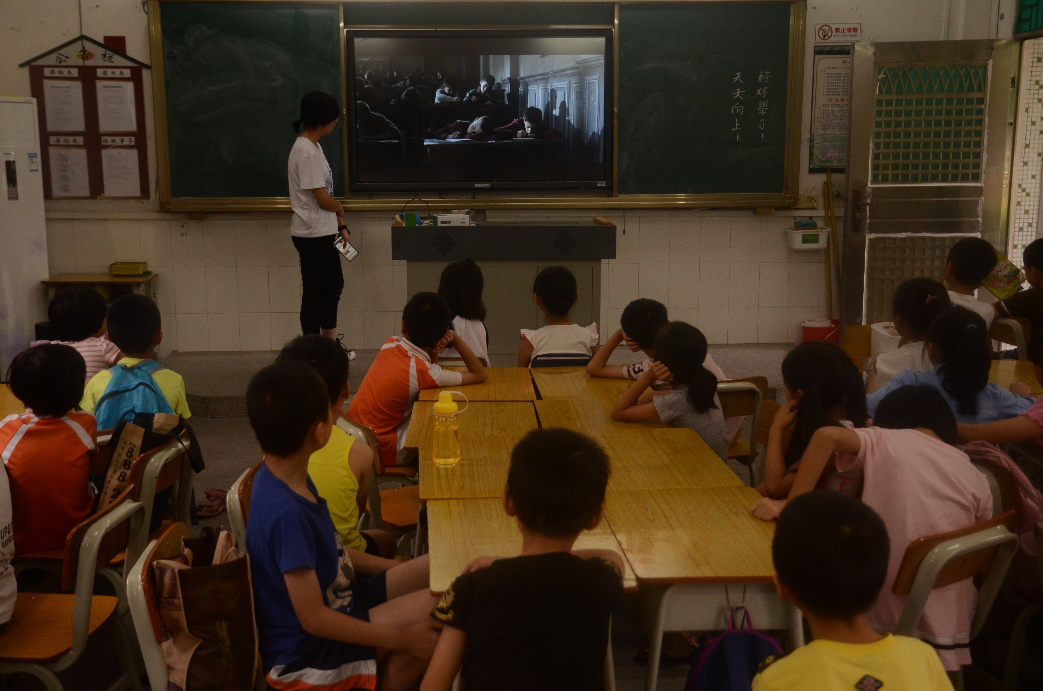 早上的第一节课是影视音乐鉴赏,老师给小朋友们播放了电影《放牛班的春天》,时不时停下来为大家讲解,影片有趣且感人,小朋友们都全神贯注的看着。