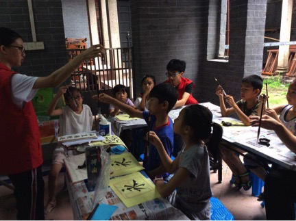本网讯7月18日上午9点30分,我校爱飞翔·薪火起航服务队义教组书法小组来到贝岗村委会,为共计十余名同学带来了第一堂内涵丰富的书法课程。针对作为中国国粹之一的书法,本次义教活动将安排每周二、周四上午9:30-11:00为同学们提供书法教学。