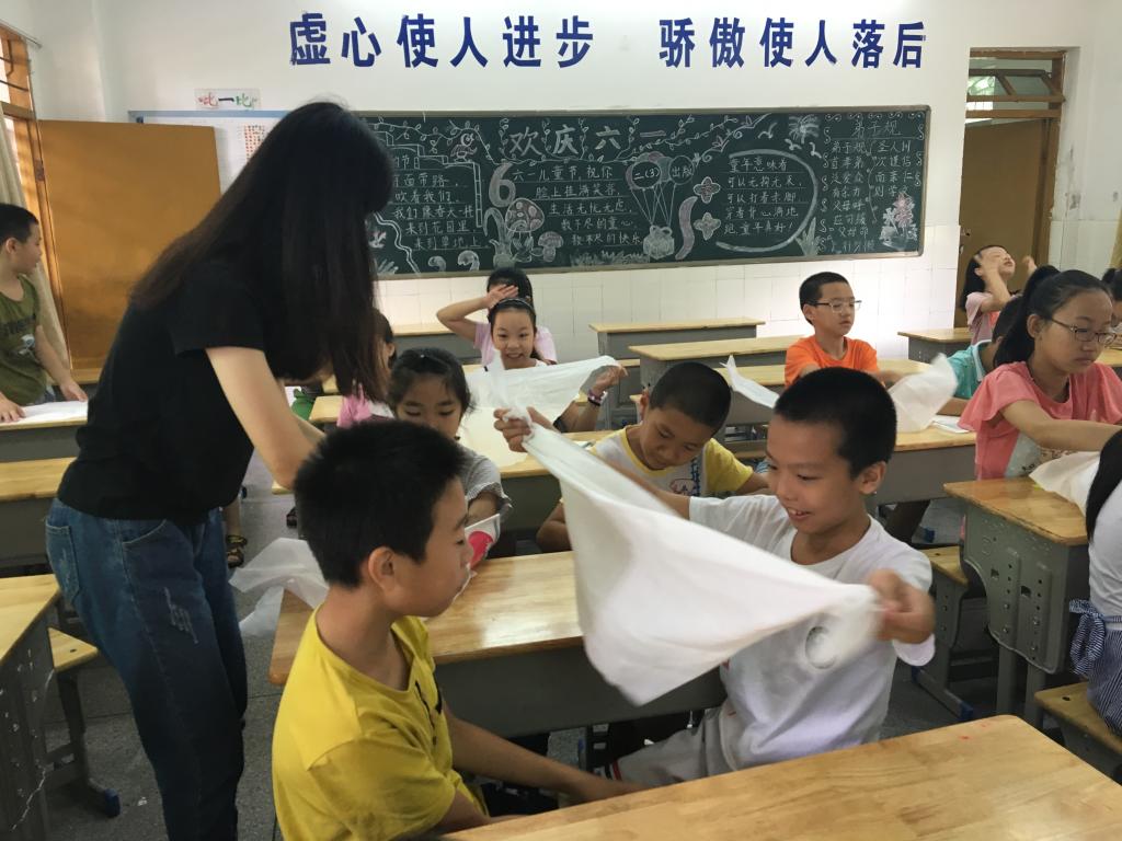 本网讯7月19日,心星筑梦服务队在梅州市大埔县湖寮镇大埔小学的第十天。今天一扫过去几天的阴雨连绵,清晨的阳光洒在操场上,孩子们兴高采烈地来到学校,充满了如八九点钟的太阳般的活力与生机。