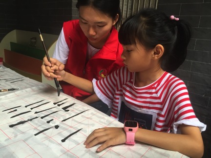 本网讯7月20日上午9点30分,我校爱飞翔·薪火起航服务队义教组书法小组准时来到贝岗村委会即邵氏宗祠,再次为十余名可爱的同学带来了第二次内涵丰富的书法课程。通过上一次的接触,同学们已很快接纳了老师,本次的课堂氛围也更加的和谐融洽。