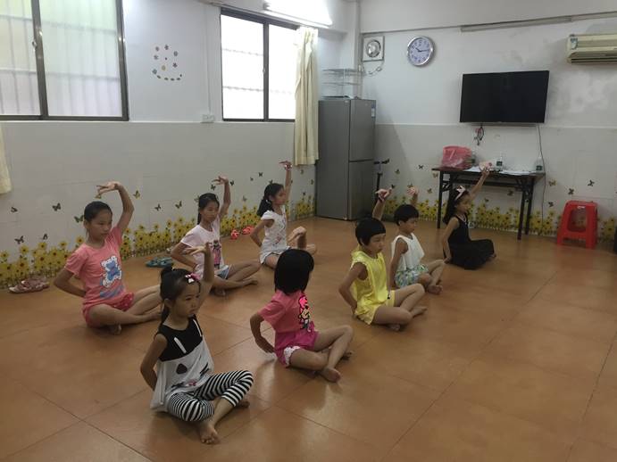今天舞蹈课的同学们都遵守上节课的约定提前十五分钟到达课室,并主动开始自己练习。课程一开始,社工便与同学们共同确定了舞蹈队的名字为“谷围之光”并正式任命了队长。随后,老师带领同学们跳《健康操》作为热身运动活动身体后,又确定了这一舞蹈最终定格的动作。然后便开始复习舞蹈《巡壶》,第一排同学和第二排同学分别练习并互相评价指导。课间休息时,老师为个别同学辅导较有难度的“手部开花”动作,而已经掌握的同学也加入进来帮助指导。休息过后,便是傣族舞前半段的复习与后半段的学习,期间,两位同学闹了一点小矛盾,社工则把她们带到一边单独辅导以维持课程正常进行。课后,同学们就今天所学内容分享了心得与体会,并对下节课表示了期待。