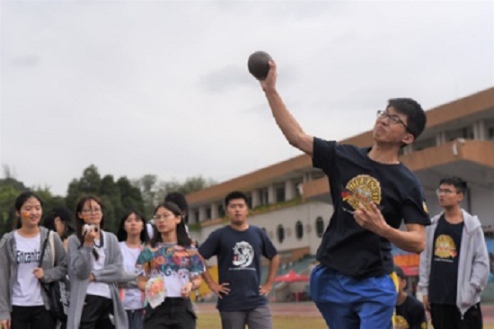 与此同时,男子铅球预决赛开始,运动员们手握沉甸甸的铅球,往空中一挥,铅球在空中留下完美的抛物线。过几轮比赛的较量,俄语1502谢航辉同学拔得头筹,德语1602李达同学获得第二名,西语1602倪士鸿同学获得第三名。