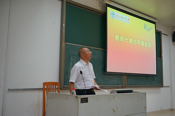 随后,教师代表方开瑞教授发表题为“谈研究生学习”的讲话。他先是寄语研究生,无论做人还是做学问都要做到“慎于言而敏于行”。而后,他既鼓励莘莘学子阅读中外经典著作,又建议广大学生建立自己的研究格局,在完善知识体系的同时采用全新的研究方法。发言最后,方开瑞教授希望研究生新生在学术上做到规范性与创造性兼而有之,并祝愿学子们能超越前人、实现突破。
