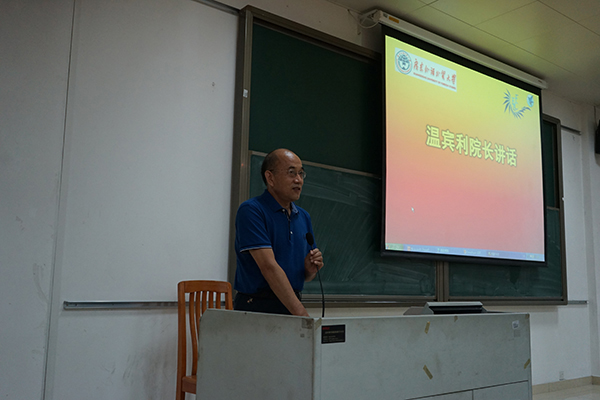 温宾利教授首先代表英文学院表达了对17级全体研究生新生的热烈欢迎。他以英语、汉语中“研究生”一词的区别引出话题,强调创新在学习研究中的重要性,并提醒新生们更多地关注研究领域的知识,同时不断提高自身的语言表达能力。他认为研究生们要把握时间,管理好自己的学习和生活,争取如期完成学业顺利毕业。