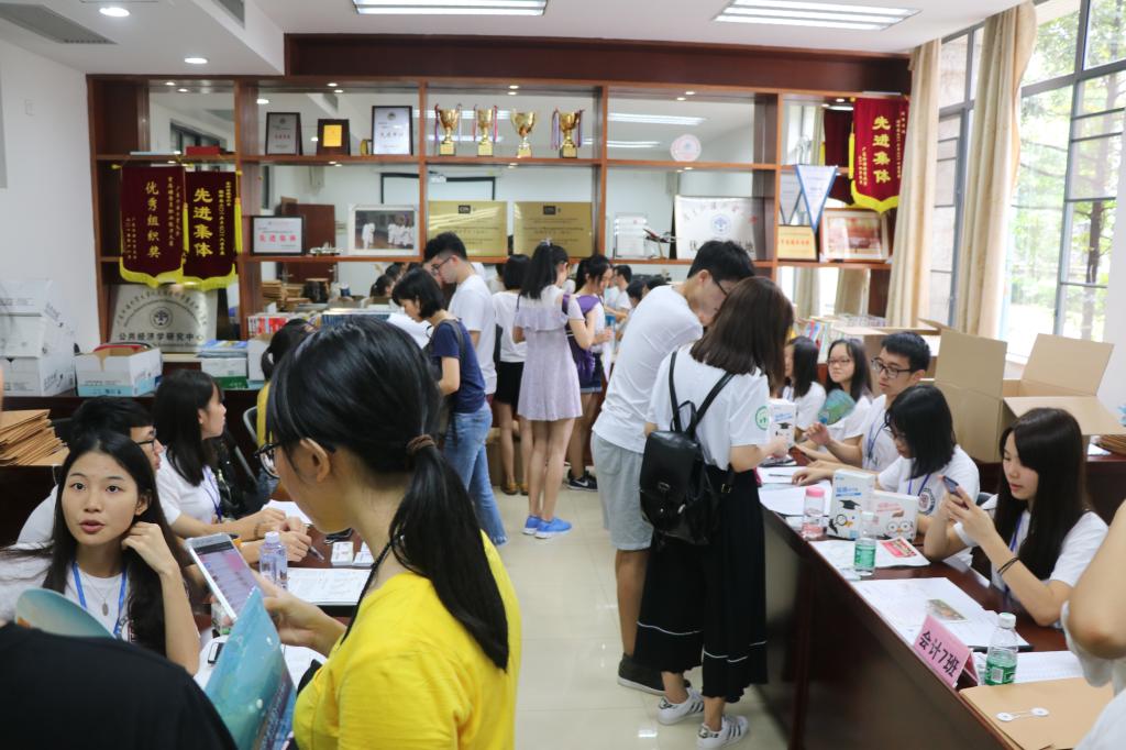 学院领导对此次迎新工作也十分重视。会计学院党委书记孙家和、院长刘中华、副院长汤胜以及党委副书记黄晓梅也亲临现场视察与指导工作。领导们仔细询问迎新工作及志愿者工作开展情况,表达了学院对迎接新生志愿者的亲切问候。团委书记邓海清老师以及17级辅导员李浩然老师也在工作岗位上指导学生工作、为新生们指引和解答疑问。