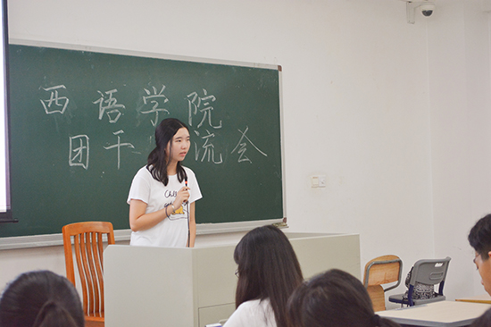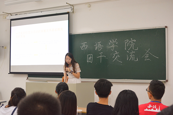 本网讯9月21日晚上9点,2017-2018学年西语学院第一次团干交流会在第六教学楼B209正式召开。团委副书记李依静,组织部部长陈晓盈,各班团支书及班长出席了本次会议。会议开始,组织部部长陈晓盈介绍了会议的流程及本学年团支书的工作,并提出了本学期的团日活动主题——“不忘初心,继续前行”。