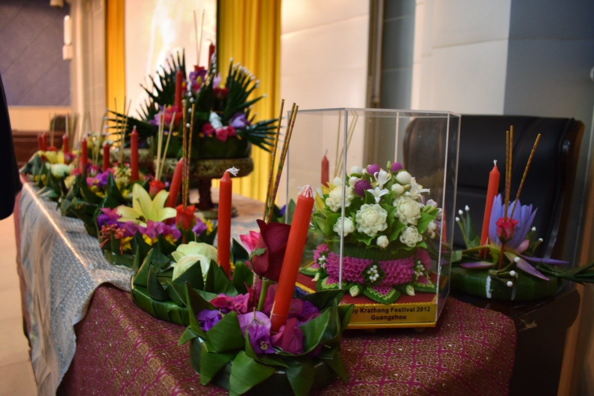 讲座当天适逢泰国水灯节, Teavakorn khumsat教师简述了水灯节的来历与重要意义,介绍水灯制作方法,并现场展示了多个由泰语系师生共同完成的精美水灯。