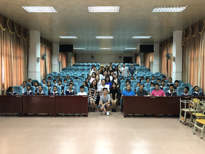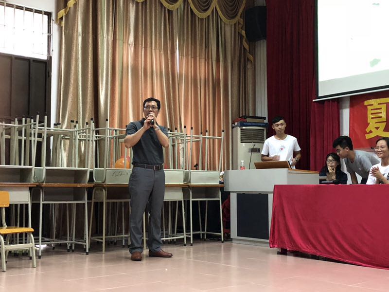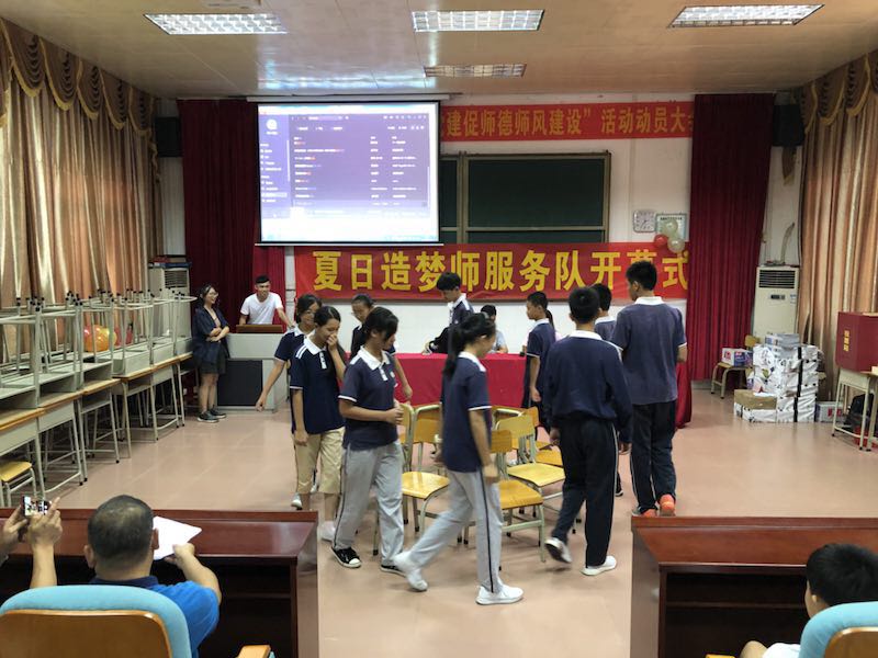 伴随着清晨的旭阳,参与活动的城东中学学生先后走入校门,校领导及师生齐聚在学校宽敞明亮的阶梯教室中。夏日造梦师服务队的队长黄小山和副队长黎靖妍先后发言,代表服务队全体对于校领导对服务队此行的大力支持表示衷心感谢,并对后续活动开展提出了展望。