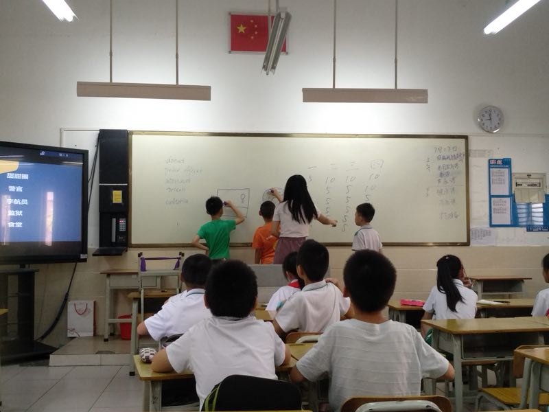 本网讯 7月17日早上,义教组和值日的同学迎接我们的小同学进入教室,开启一天的课程。孩子们在英文单词之你画我猜的课堂上学习新的单词,在爱国课上接受爱国主义教育,在数学课上领略数学的神奇,领略逻辑推导的魅力,在声乐课上放声歌唱,在毽子课上释放活力,在书法课上感受汉字之美,在手工课上学习动手技能,在写作课上培养写作能力,在卫生课上掌握生活本领,懂得如何保护自己。