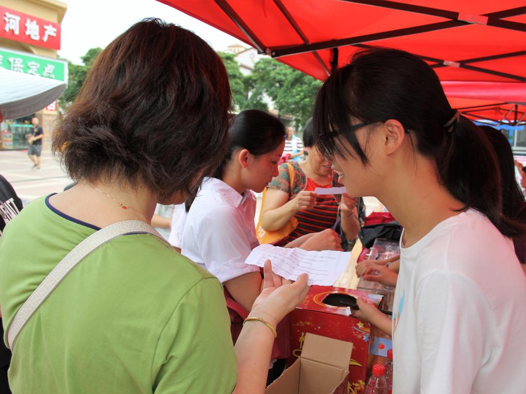 本网讯 法学院三下乡FOREVER队伍7月广场上16日上午9:20于富力金港城外广场上与当地司法所一起进行校外普法活动。该活动响应了“依法治国”的国策,也正值全国、省市“七五”普法的中期。故而法学院院队在与司法所沟通并确定了物资和普法地点之后,开展了此次普法活动。